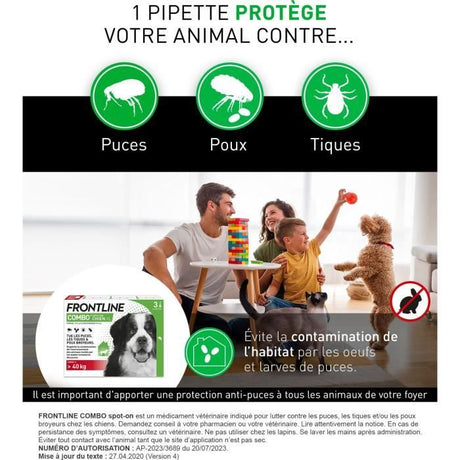 Frontline Combo chien - Anti-puces anti-tiques pour chien XL - 40-60kg - 3 pipettes