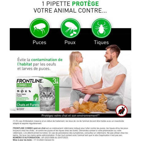 Frontline Combo chat - Anti-puces anti-tiques pour chat - 3 pipettes