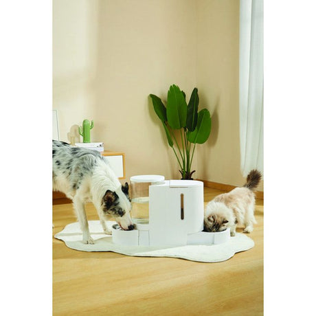 Distributeur Croquettes & Eau - M PETS - DUPLO - 1.3 kg / 3 L - 40 x 16.2 x 29.1 cm - Blanc