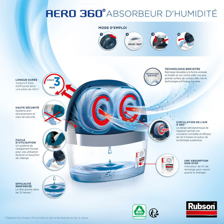 €139,20Prix unitaire /IndisponibleStock faible (14 unités)Absorbeur d'humidité AERO 360° 40m² - RUBSON