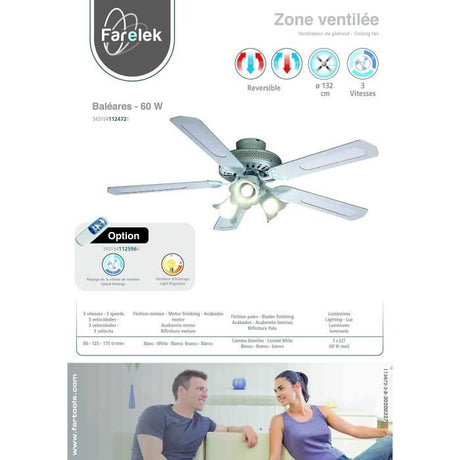 €614,89Prix unitaire /IndisponibleEn stock (90 unités)OKLAHOMA Blanc & Bois - Ventilateur de plafond Ø137cm 100W + éclairage LED