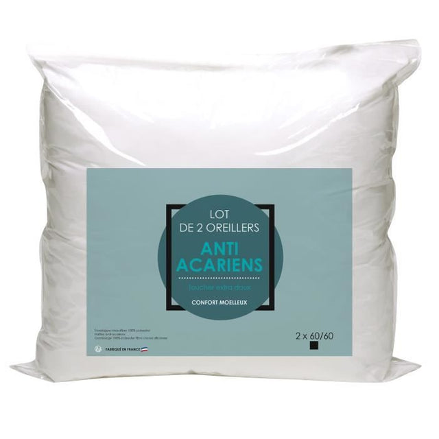 Lot de 2 oreillers Microfibre Anti-Acariens 60x60cm