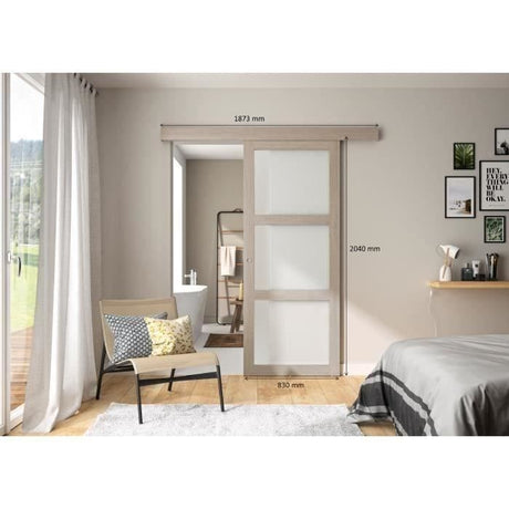 OPTIMUM Kit porte coulissante + rail Atelier - H204 x L83 x P4 cm - Noir verre dépoli