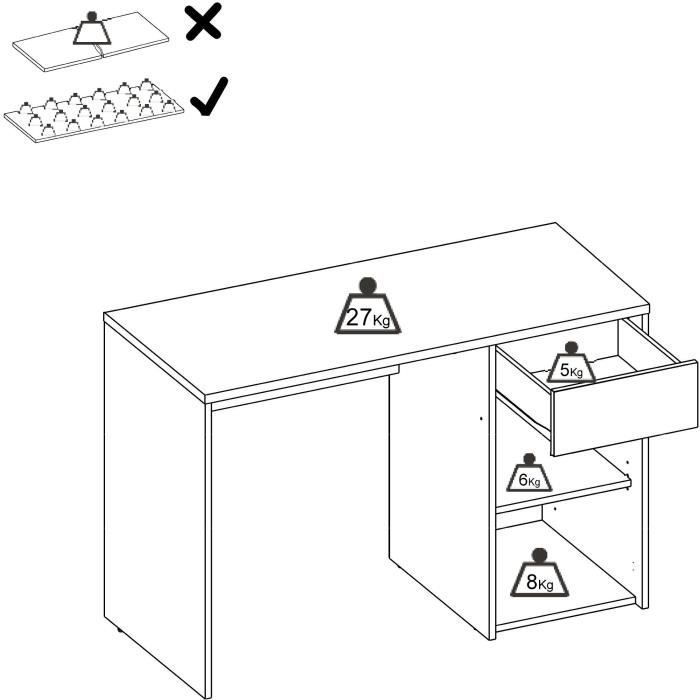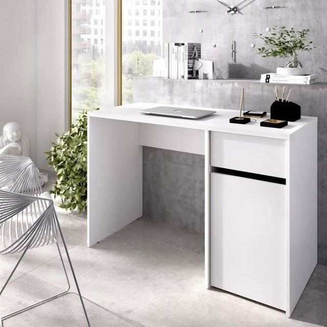 Bureau - BALI - Blanc - 1 tiroir / 1 porte - 110,3 x 50,2 x 74,2 cm
