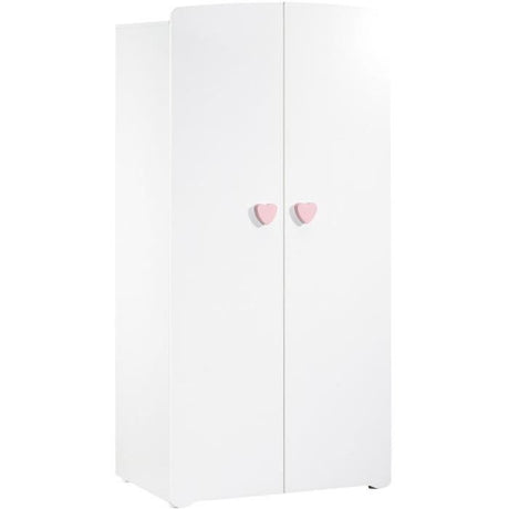 €374,94Prix unitaire /Indisponible Armoire bÈbÈ Basic - MDF - Blanc - 2 portes - Bouton coeur rose - 85 x 175 x 56 cm - BABY PRICE