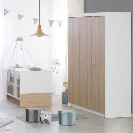 Chambre bébé Trio : Lit 70 x 140 cm + Commode a langer + Armoire AHOI - Chene - TREND TEAM