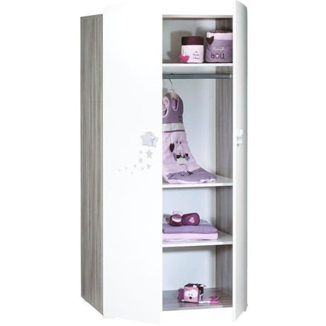Armoire bÈbÈ Basic - Blanche - Boutons Ètoiles grises - 2 portes - Babyprice