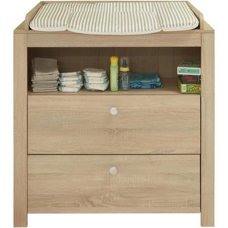 €508,56Prix unitaire /Indisponible Chambre bébé duo NIKO - Lit 70x140 cm + Commode a langer 2 portes - Décor chene naturel - TRENDTEAM