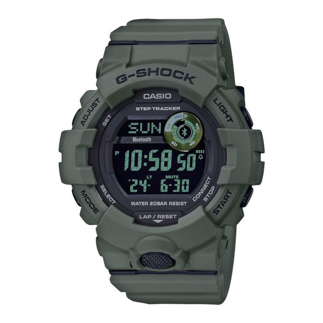 Cette montre Casio G-Shock a cadran LCD Bluetooth kaki pour hommes, GBD-800UC-3ER 49mm, présente un design vert kaki et noir unique. Le cadran LCD noir affiche l'heure, ainsi que la fenetre jour / date. Bien que le garde-temps ait l'aspect de l'équipement militaire, il doit également etre suffisamment robuste.