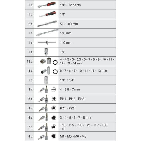 Module - KS TOOLS - 711.1011 - Module de douilles et accessoires - 1/4 - 3/8 - 1/2 - 175 pieces