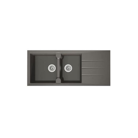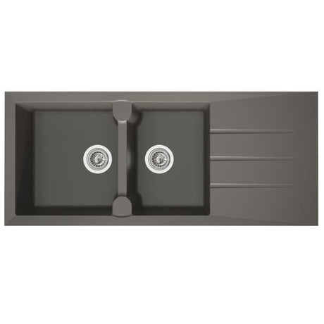 STRADOUR Evier cuisine a encastrer 2 bacs + 1 égouttoir Aloa - Résine - 116 x 50 cm - Gris béton