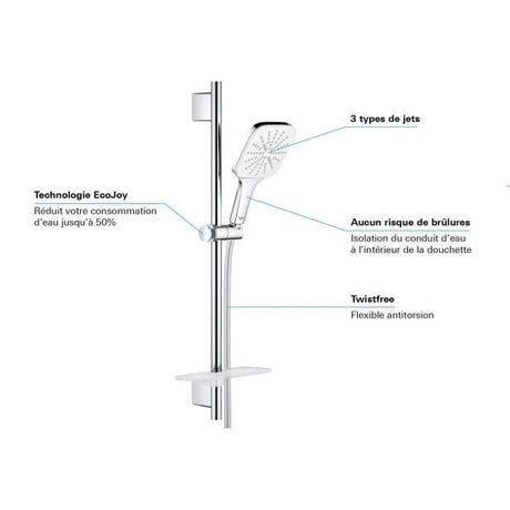 Pommeau de douche ROUSSEAU Combiné Flexible 3JETS STOP' O chromé