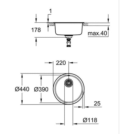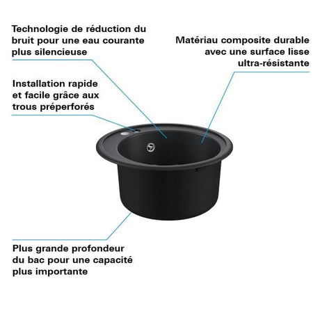 Evier composite - GROHE - K200 - 1 bac - A encastrer - Noir - Rond