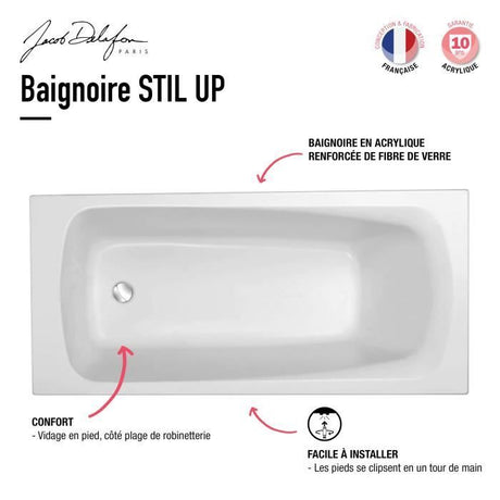 €95,68Prix unitaire /Indisponible Baignoire rectangulaire - JACOB DELAFON - Stil Up - Acrylique - Blanc - 160x70 cm