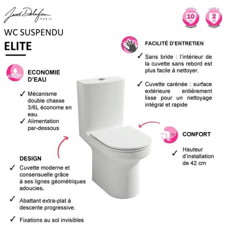 Pack WC au sol sans bride Elite 3/6L, abattant extraplat fermeture douce, Blanc