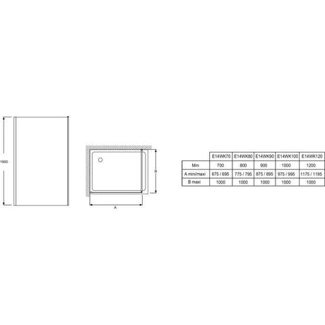 Paroi de douche en verre trempé 8mm - Saint-Gobain - 900mm - Parsol gris - Quincaillerie noire mat