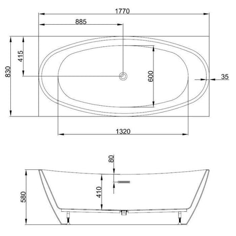OCEANIC Baignoire ilot Rosã - L.177 x I.83 x H.58 cm - En acrylique - Bonde poussoir - Blanc