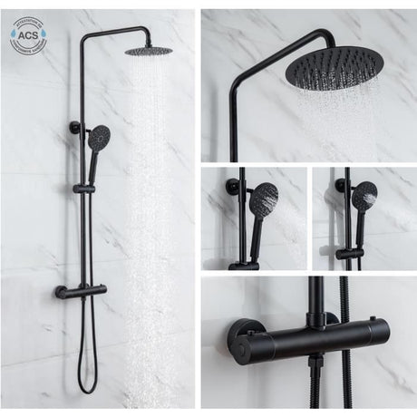 Colonne de douche OCEANIC - Mitigeur thermostatique - Pomme haute ronde diametre 20 cm - Noir mat