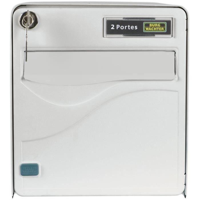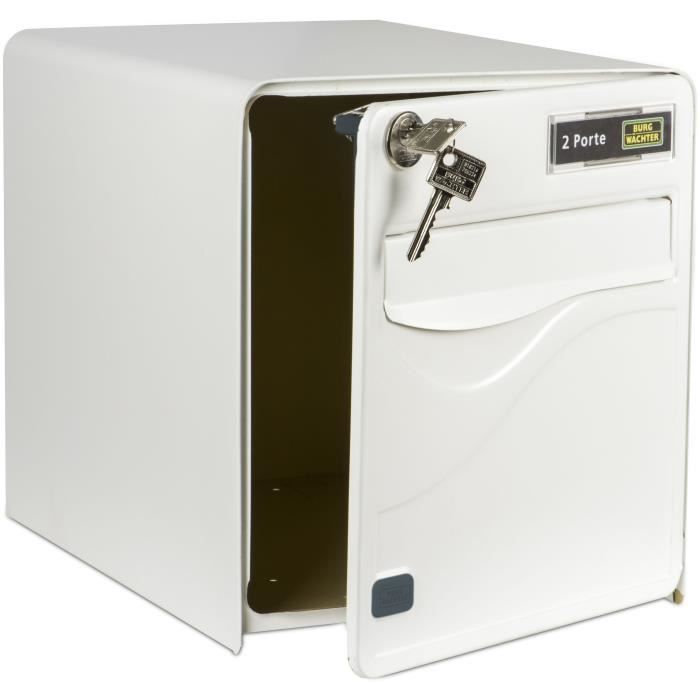 Boîte aux lettres BURG WACHTER BALTIC 2 Portes - Sur pied - Acier galvanisé - Ouverture latérale - Blanc - Fabriqué en France