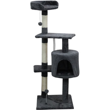 JASPER Arbre a chat gris 40 x 40 x 114 cm -3 plateformes, 1 niche, poteaux a griffer