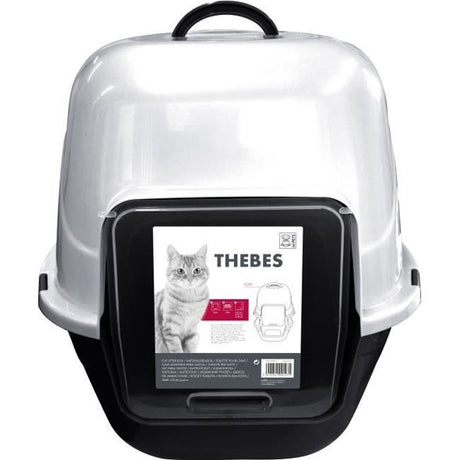 THEBES Maison de toilette XXL- Bac a litiere - 62x53x58 cm - Noir et blanc - Pour chat