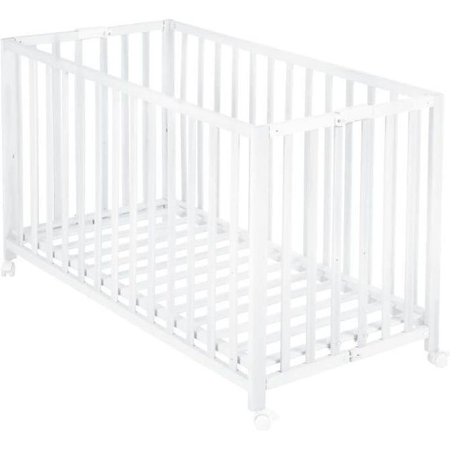 Lit bébé pliant - 60 x 120 cm - ROBA - FOLD UP - Roulettes - Blanc