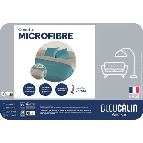 €70,05Grundpreis /Nicht verfügbar Couette microfibre - 240 x 220 cm - BLEU CALIN - Chaude - 400 g/m² - Bicolore Agate / Poivre