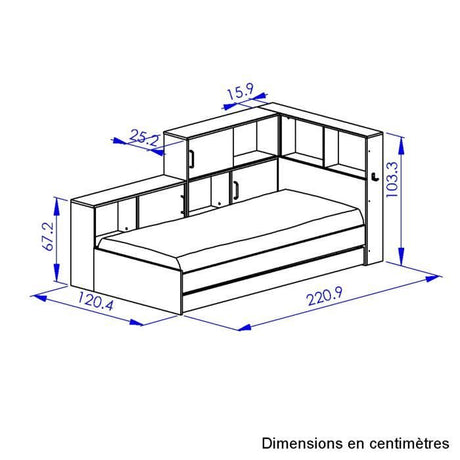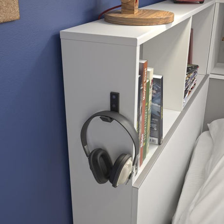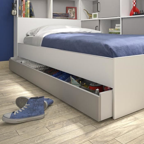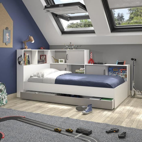 GAMI Erwan Lit enfant avec rangements - Décor blanc et gris- 90 x 200 cm