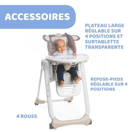 CHICCO Chaise Haute Polly 2 Start - 4 Roues happy silver