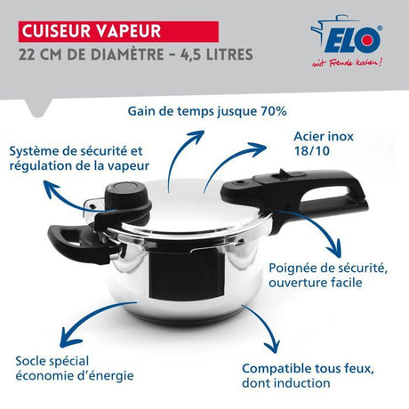 Autocuiseur vapeur - FACKELMANN - Elo Mistral Premium - Acier inoxydable 18/10 - 22 cm - 4,5 litres