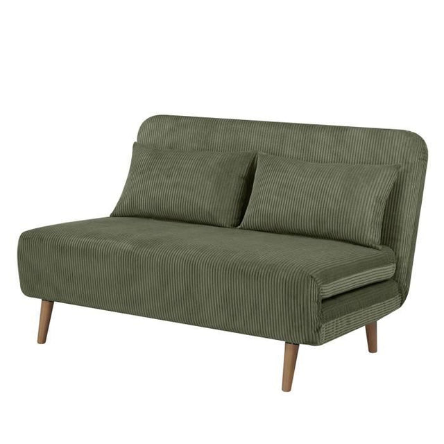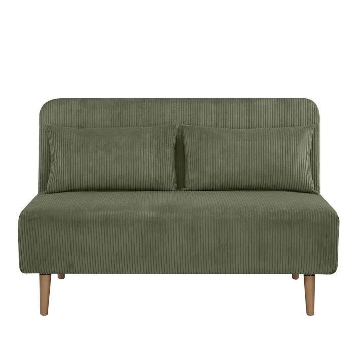 Banquette BZ - 2 places - Tissu velours côtelé Vert - 130 x 90 x 81 cm - DEPLO