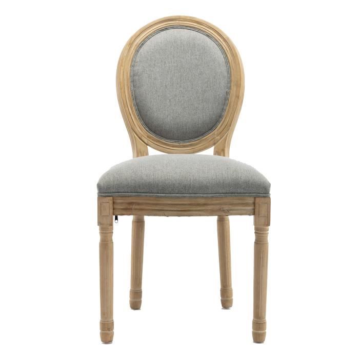 GRETA Lot de 2 chaises mÈdaillon - Pied bois - Tissu Gris - L 49 x P 56 x H 96 cm