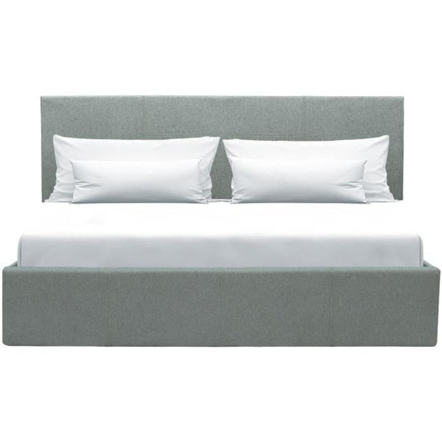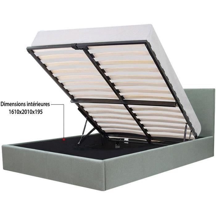 Lit coffre adulte MARTIN - Couchage 160x200 cm - Gris clair - Sommier a lattes - L 209 x P 166 x H 99 cm