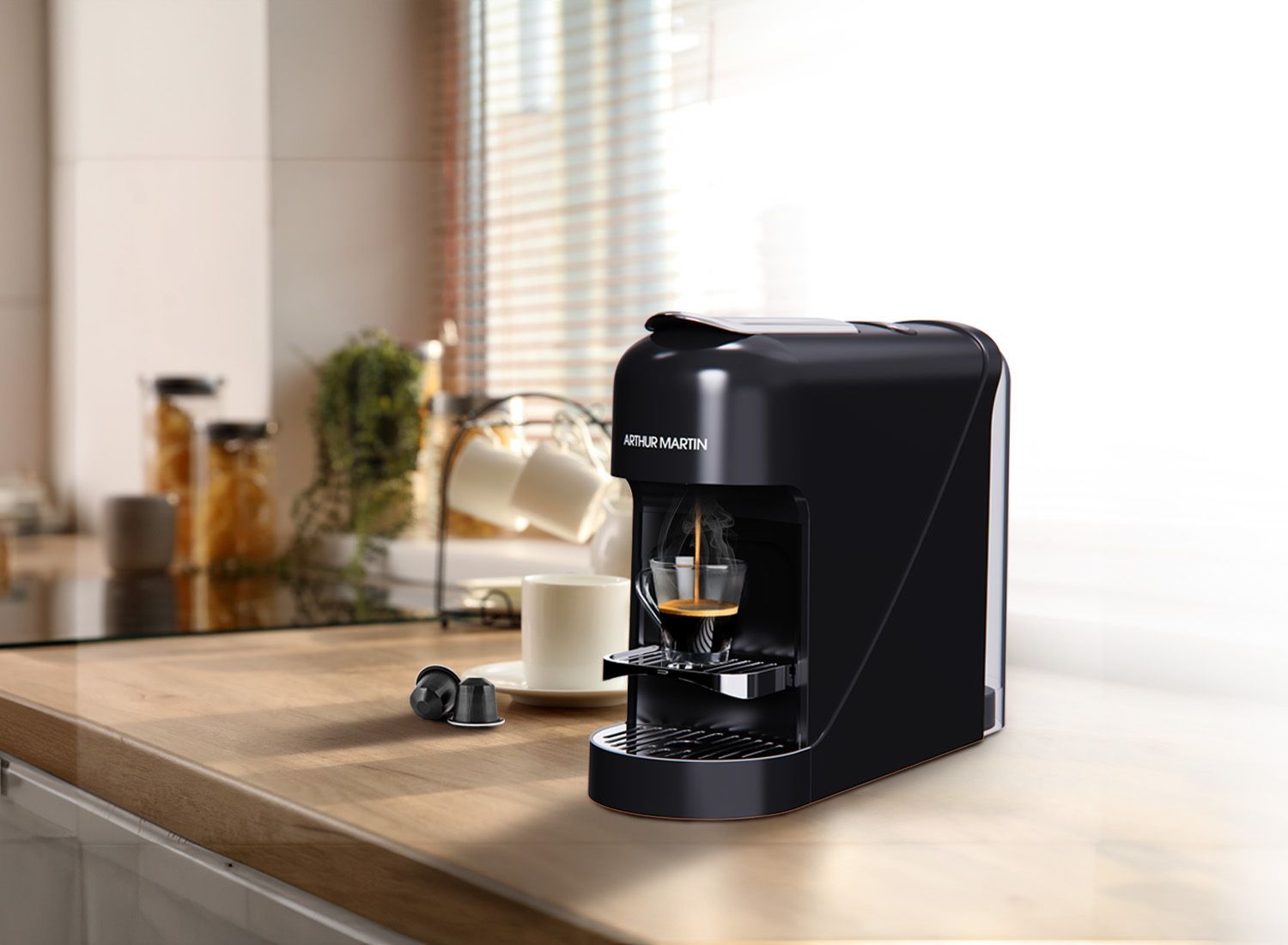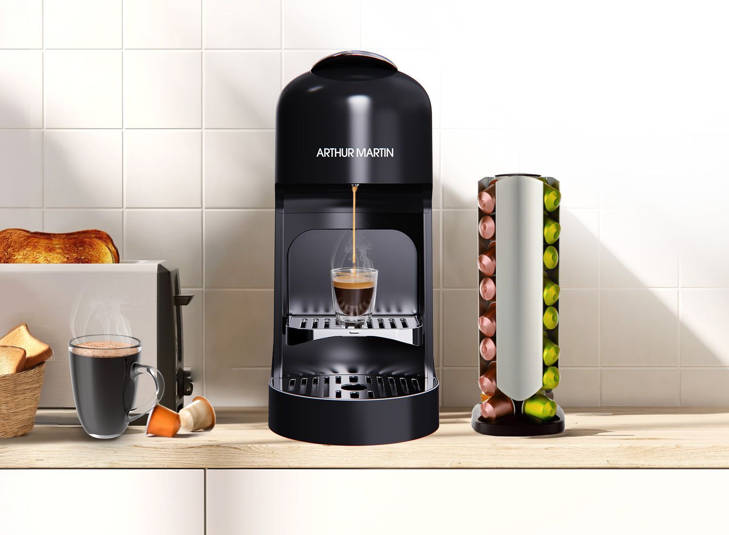 Machine a café a capsules - ARTHUR MARTIN - AMN230N - Expresso & Lungo - 1400 W - Noir