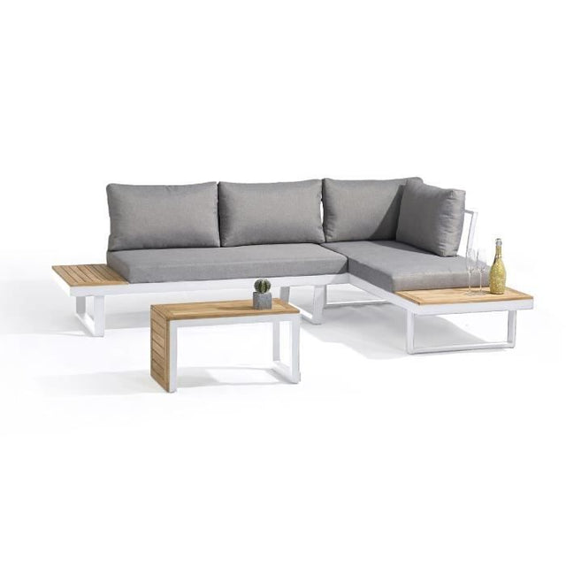 Salon de jardin modulable - Aluminium - DCB GARDEN - 4 places - TOKYO - Blanc et bois d'acacia