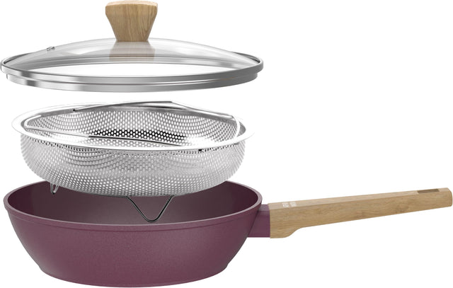 Sauteuse - Tous feux dont induction - ARTHUR MARTIN - AM3056 - Revetement céramique - Ø 24 cm - Couvercle et panier inox - Prune
