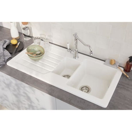€653,07Grundpreis /Nicht verfügbarSehr geringer Bestand (2 Einheiten)Evier a encastrer céramique blanc - JACOB DELAFON - 1,5 bac - 100cm - Réversible avec égouttoir