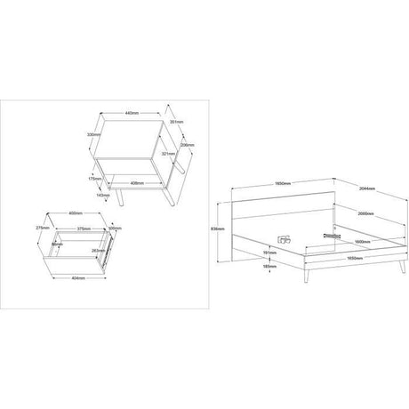 Ensemble Lit 160 x 200 cm + 2 chevets - AALBORG - Scandinave - Blanc / Chene - PARISOT
