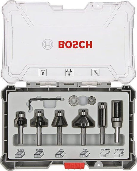Coffret de 6 fraises a araser/chanfreiner/arrondir a queue de 6 mm BOSCH - 2607017468