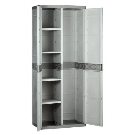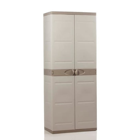 Armoire haute de rangement en rÈsine - PLASTIKEN - TITANIUM - 4 Ètageres - Beige et Taupe