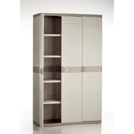 Armoire haute de rangement PLASTIKEN TITANIUM - 3 portes, étageres et penderie - Beige et Taupe