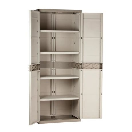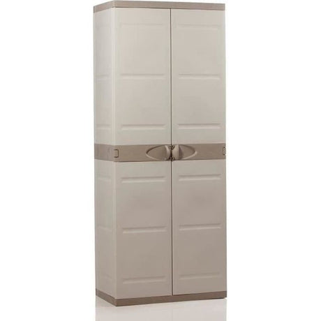 Armoire basse de rangement en résine PLASTIKEN - 2 portes et 2 étageres - Beige - 70x45x100 cm