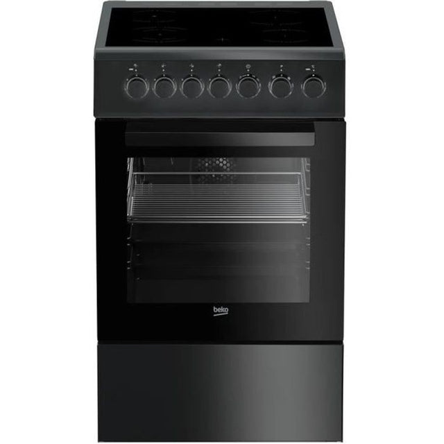 BEKO - FSS57100GAC - Cuisiniere - Pose libre - L 50 x P 60 x H 85 cm - 4 Vitrocéramiques - Four convection - Parois catalytiques latérales 65 L - Gris anthracite - Voyants de chaleur résiduelle.