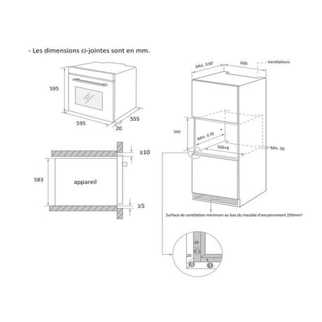 Four encastrable nettoyage catalyse - chaleur brassée OCEANIC F60IX Inox - 59,5 x 59,5 x 56,6 cm