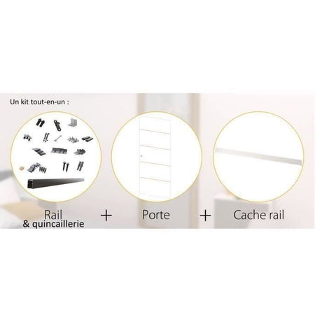 OPTIMUM - Kit porte coulissante blanc + rail + bandeau Blanc - H 204 x L 93 x P 4 cm
