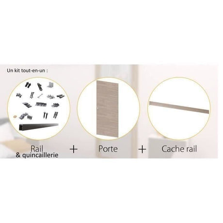 OPTIMUM - Kit porte coulissante + rail + bandeau VÈrone - H.204xL.83xP.4 cm - Chene taupe