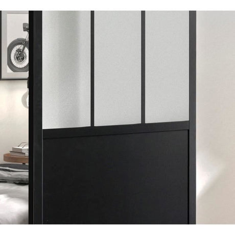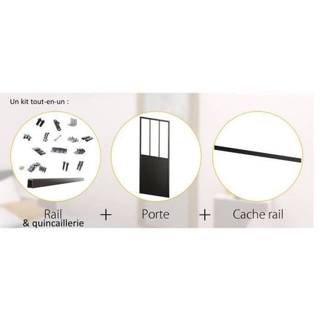 OPTIMUM Kit porte coulissante ATELIER noir + rail apparent - 204 x 83 cm - verre transparent