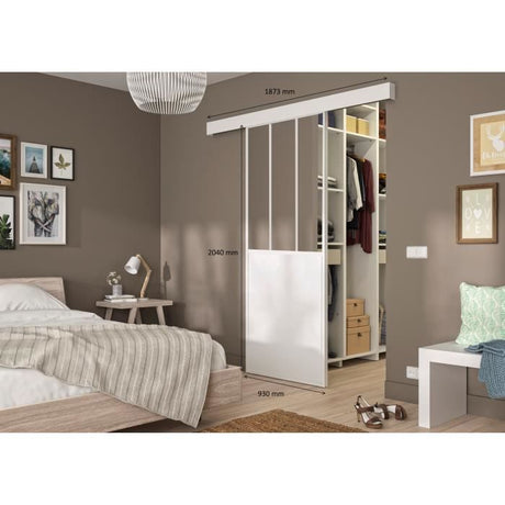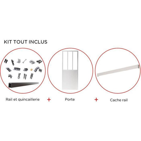 OPTIMUM Kit porte coulissante verre dÈpoli + rail Atelier - H204 x L83 x P4 cm - Blanc