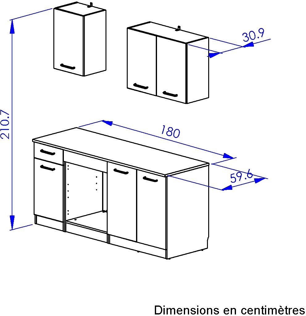 ALPAGA - Cuisine complete - Chene silva / Grege - 180 x 60/31 x 211 cm - Avec meuble four et plan de travail - GAMI