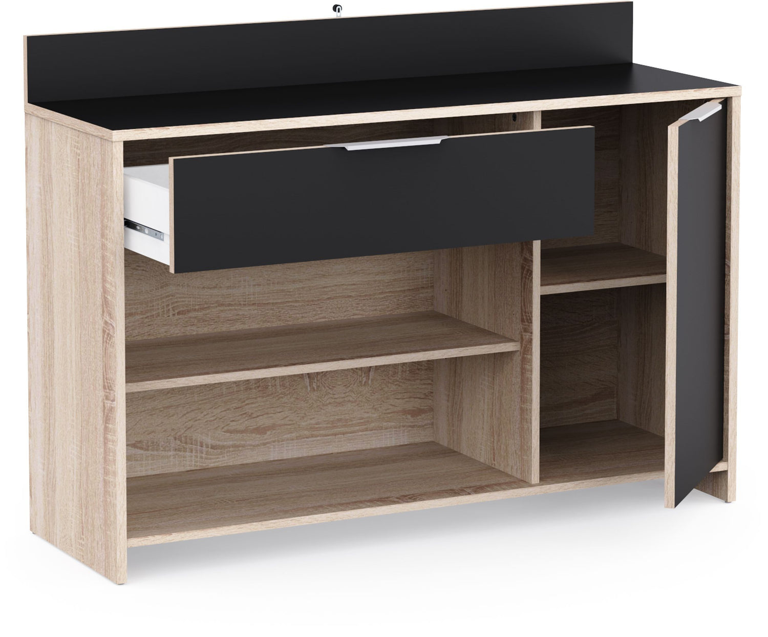 Buffet de cuisine - Décor chene brut et noir - Contemporain - 1 porte - MIKE - L 123 cm